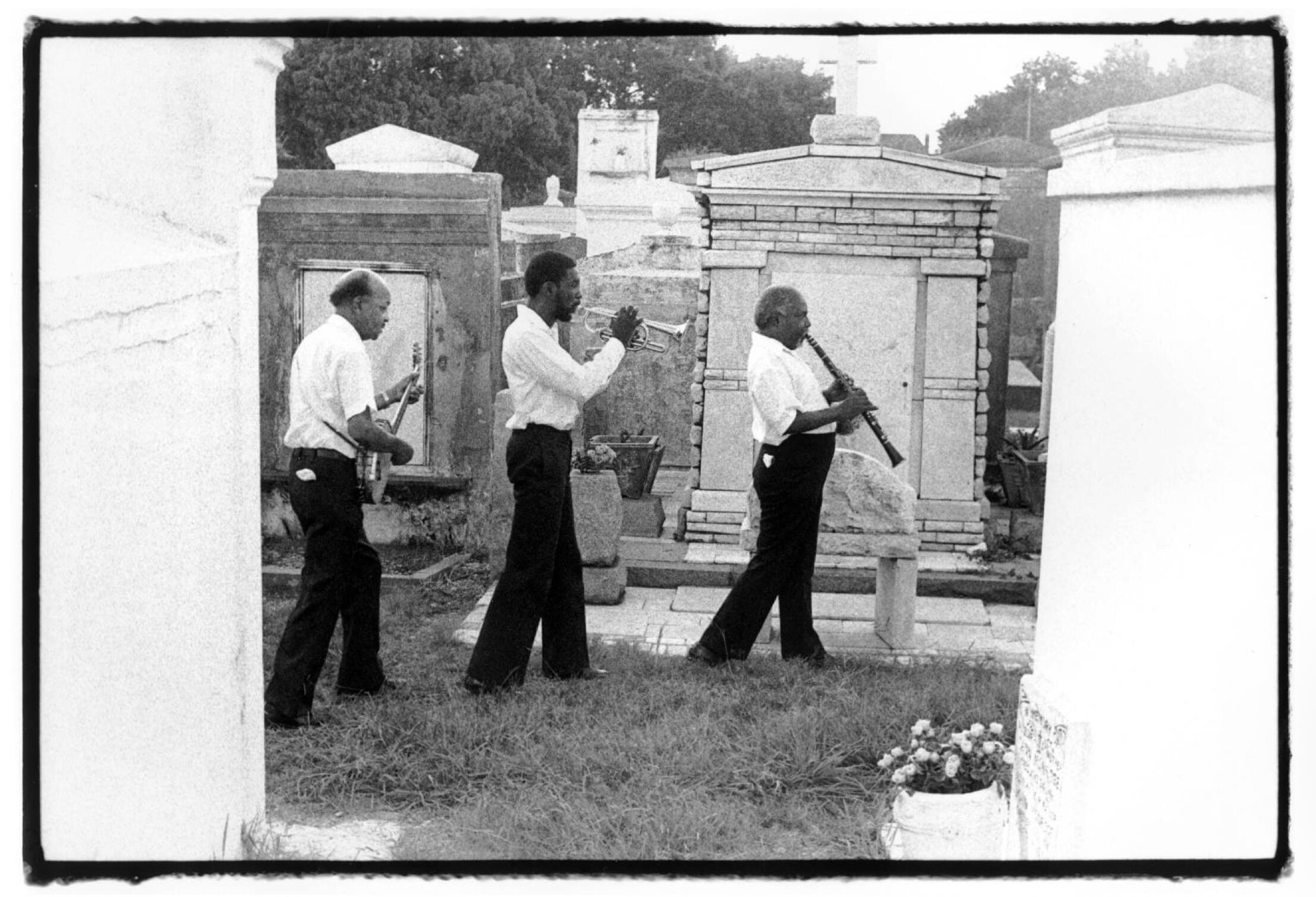 I was in New Orleans assisting (producer) Nelson Breen with Bearden Plays Bearden, part of a Philip Morris-sponsored film series. This captures the second line (the New Orleans tradition of playing upbeat music during a funeral procession), an important subject for Bearden.
